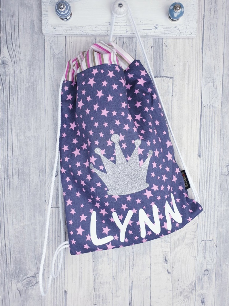 Hier kaufst Du einen Rucksack mit einer Krone in Glitzer. Als Motiv wird eine Krone aus Glitzervelour aufgebracht. Es wird fest aufgebügelt. Die Farben passe... Lesen
